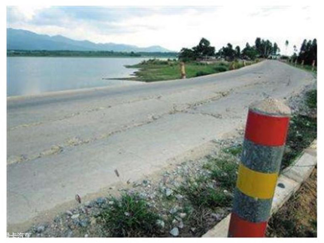 开得太快太近了,又发生什么轮胎打滑,就非常容易掉进水里,所以走堤坝路就要保持一定安全距离。
